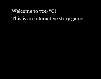 700 °C is a text-based interactive story game. You wake up in a close-to-empty city through which you navigate by making choices. Why are people leaving? Are you in danger? Find out!